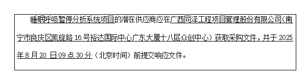 6.采購(gòu)需求:睡眠呼吸暫停分析系統(tǒng)項(xiàng)目1項(xiàng)。具體內(nèi)容詳見本競(jìng)爭(zhēng)性磋商文件。