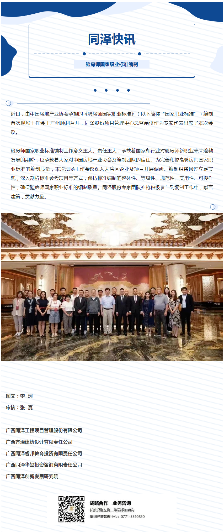 同澤快訊 | 驗房師國家職業(yè)標準編制組召開首次現(xiàn)場工作會議 同澤股份專家積極獻言